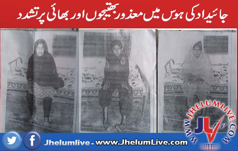 جہلم لائیو (محمد امجد بٹ) اپنوں کا خون سفید ہو گیا ،ڈومیلی میں بڑے بھائی نے جائیدا د پر قبضہ کی خاطر اپنے ہی بھائی اوراس کے چار معذوربچوں کو وحشیانہ تشدد کا نشانہ بناڈالا ، ذہنی معذور بچے کو کلہاڑیوں کے وار کرکے ادھ موا کر دیا ، تھانہ ڈومیلی پولیس نے بھی بااثر افراد کے سامنے گھنٹے ٹیک دئیے ،ڈی پی او کے حکم کے باوجود حملہ آوروں کے خلاف کاروائی سے صاف انکار، چار معذور بچوں کا مظلوم والد انصا ف کیلئے خبریں آفس پہنچ گیا، بااثر خاندان سے تحفظ کی اپیل ، تفصیلات کے مطابق تھانہ ڈومیلی کے علاقے میں جائیداد کی ہوس میں اندھے ہو کر اصغر علی نامی بڑے بھائی نے چار معذور بچوں کے باپ چھوٹے بھائی ریاضت علی کے گھر پر دھاوا بول دیا اور اپنے نو بیٹو ں کے ہمراہ حملہ کرکے مظلوم ریاضت علی کے ذہنی معذور بیٹے عثمان علی کو کلہاڑیوں کے وار کرکے شدید زخمی کر دیا ،جس کو فوری طور پر ڈومیلی آر ایچ سی لایا گیا جہاں عملہ نے ٹال مٹول کر تے ہوئے اس کو سول ہسپتال ریفر کر دیا، حملہ آور خاندان نے بزرگ ریاضت علی اور ان کی بیوی کو بھی وحشیانہ تشدد کا نشانہ بنایا واقع کی اطلاع ملنے پر پولیس تھانہ ڈومیلی نے ملزمان اصغر علی ، سجادعلی اور یثرب کو گرفتار کرکے تھانہ منتقل کیا لیکن بااثر افراد کی فون کال پررات گئے رہا کر دیا ، ریاضت علی کے معذور بیٹے کو سو ل ہسپتال لانے پر ریاضت علی ڈی پی او جہلم عبدالغفار قیصرانی کے دفتر پیش ہوا اور ڈی پی او کی ہدایت کے باوجود تھانہ ڈومیلی نے ابھی تک بااثر افراد کے خلاف کوئی ایکشن نہیں لیا، ریاضت علی کے بیٹا عثمان علی موت و حیات کی کشمکش میں سول ہسپتال جہلم کی ایمرجنسی میں زیر علاج ہے جبکہ اصغر علی نامی حملہ آور خاندان کے افراد نے مظلوم خاندا ن کے ملکیتی رقبہ پر قبضے کی خاطر ان کی زمین پر بھرتی ڈالنے کا سلسلہ شروع کر دیا ہے چار معذور بچوں کے مظلوم باپ ریاضت علی نے وزیر اعلی پنجاب ، آئی جی پنجاب اور اعلی حکام سے بااثر بدمعاشوں سے تحفظ دلوانے اور ملکیتی رقبہ کو قبضہ سے بچانے کی اپیل کی ہے ۔