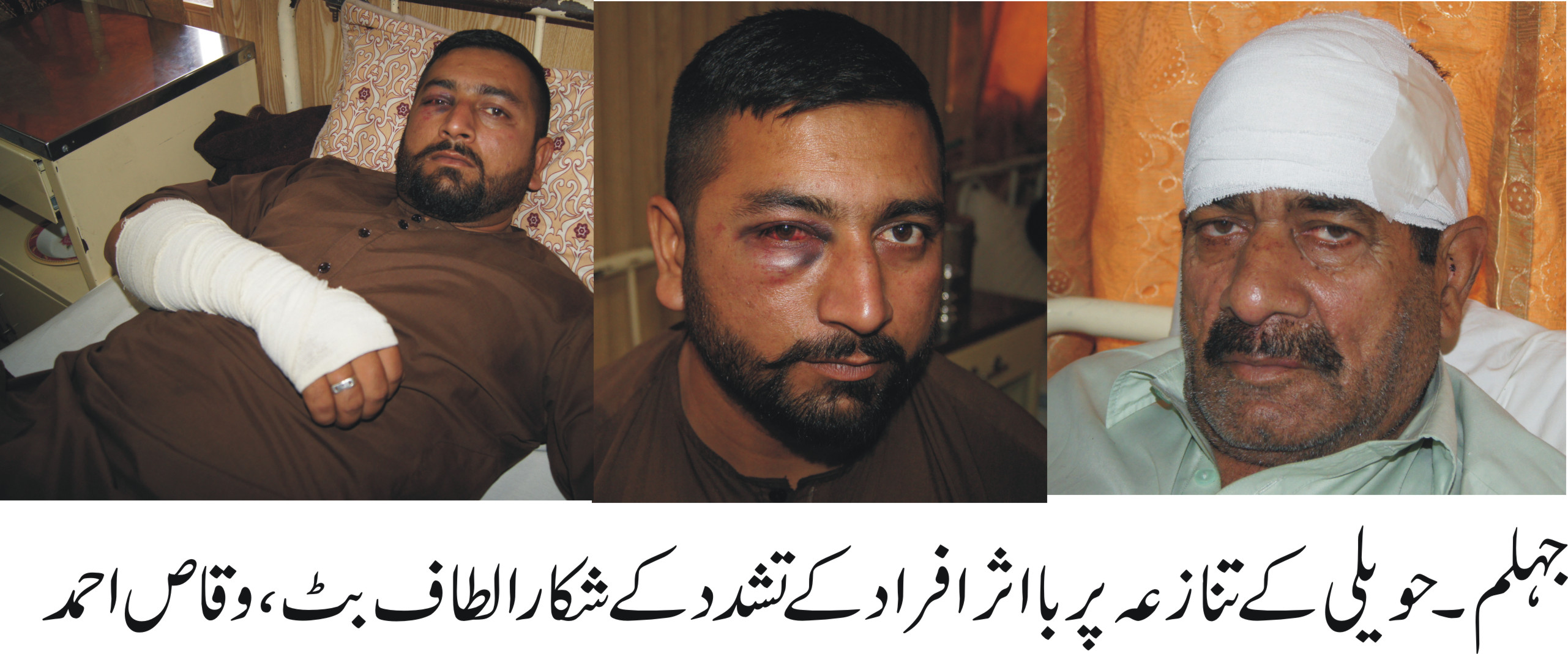 جہلم لائیو (محمد امجد بٹ) محلہ عباس پور ہ میں حویلی پر قبضہ سے روکنے پر مالکان پر بااثر افراد کا تشدد، باپ بیٹے کو زخمی کر دیا، پولیس تھانہ سول لائن نے تفتیش شروع کر دی ، تفصیلات کے مطابق عباس پورہ کے رہائشی محمد الطاف بٹ نے بتایا کہ میں نے اپنے محلہ میں ایک حویلی جاوید اقبال سے خریدی، جس پر مقامی افراد طیب ، طلحہ ، شیخ سعیداور دیگر نے قبضہ کرنے کی کوشش کی اور تالے توڑنے لگے، جس کو روکنے پر مذکورہ افراد نے مجھ پر حملہ کر دیا اور اس دوران الطاف بٹ کے بیٹے وقاص احمد کو بھی سخت تشدد کا نشانہ بنایا مقامی افراد کی مداخلت پر الطاف بٹ وغیرہ کو چھڑوا کر ہسپتال منتقل کیا گیا،جہاں الطاف کا سر پھٹ جانے پر ٹانکے لگائے گئے ، جبکہ بیٹے وقاص کی آنکھ پر گہرے زخم آئے ۔ مالکان حویلی نے حملہ کرنے پر مذکورہ بالا افراد کے خلاف تھانہ سول لائن میں درخواست برائے اندراج مقدمہ دے دی ہے جس پر پولیس تھانہ سول لائن کا کہنا ہے کہ میڈیکل رپورٹ کا انتظار ہے جس کے بعد قانونی کاروائی عمل میں لائی جائے گی