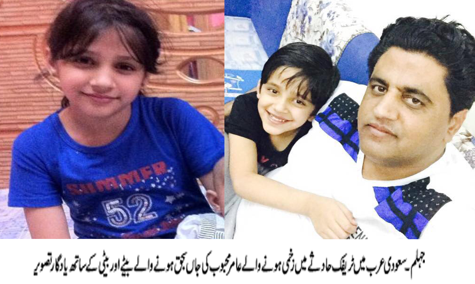 جہلم لائیو(بیورو رپورٹ)مدینہ منورہ زیارت کے لئے جانے والے سعودی عرب میں مقیم پاکستانی خاندان پر قیامت ٹوٹ پڑی۔ٹریفک حادثے میں ماں ،بیٹا اور بیٹی جاں بحق۔ باپ اور دوبیٹیاں زندہ بچ گئیں ۔ٹانگیں ٹوٹنے سے باپ معذور۔نعشیں پاکستان آبائی گھر پہنچنے پر کہرام مچ گیا۔نماز جنازہ میں سینکڑوں افراد کی شرکت ۔تفصیلات کے مطابق جہلم کے نواحی گاؤں وٹالیاں کی معروف سماجی اور سیاسی شخصیت صوبیدار (ر) محبوب عالم کا جواں سالہ بیٹا عامر محبوب جو روزگار کے سلسلہ میں اپنی بیوی اور بچوں کے ہمراہ سعودی عرب مقیم ہے گذشتہ دنوں اپنی کار میں اہل خانہ کے ہمراہ مدینہ منورہ جا رہے تھے سڑک پر اچانک اونٹ آنے سے عامر محبوب کی کار اونٹ کو بچاتے بچاتے الٹ گئی ۔کار الٹنے سے عامر محبوب سمیت کار میں سوار اسکی فیملی کے پانچ افراد شدید زخمی ہو گئے۔ بعد ازاں زخموں کی تاب نہ لاتے ہوئے عامر محبوب کی بیوی ناصرہ ،تیرہ سالہ بیٹی رمشا،اور چھ سالہ بیٹا بلال جاں بحق ہو گئے ۔جبکہ چار سالہ عروج اور سات سالہ ریبا کی زندگیاں بچ گئیں ۔کار حادثے میں عامر محبوب ٹانگوں اور بازو سے معذور ہو گیا جو ابھی تک سعودی عرب کے ہسپتال میں زیر علاج ہے کے علاوہ اسکی دو بیٹیاں بھی ہسپتال میں زیر علاج ہیں۔عامر محبوب کی جاں بحق ہونے والی بیوی ،بیٹے اور بیٹی کی نعشوں کو گذشتہ روز جب پاکستان میں انکے آبائی گھر وٹالیاں لایا گیا تو گھر میں کہرام مچ گیا ایک ہی خاندان کے اجڑنے پر ہر آنکھ اشک بار تھی ،جاں بحق ماں بیٹی اور بیٹے کی نماز جنازہ میں سیکڑوں افراد نے شرکت کی،اس المناک حادثے پر ایڈیٹر انچیف جہلم لائیو نوید احمد نے سوگوار خاندان سے تعزیت کا اظہار کرتے ہوئے مرحومین کے لئے دعا کی کہ اللہ تعالیٰ ان کو جوار رحمت میں جگہ دے جبکہ زخمیوں کو اللہ تعالیٰ جلد صحت یاب کرے