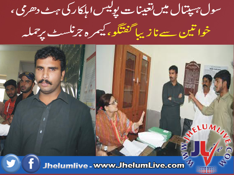 جہلم لائیو (محمد امجد بٹ) چیک اپ کیلئے آنے والی خواتین کو تنگ کرنے سے روکنے پر پولیس اہلکار کا سینئر کیمرہ جرنلسٹ پر حملہ، خواتین ، بھائی اور والدکو سر عام گالیاں ، ہسپتال چوکی پر تعینات ہٹ دھرم اہلکار مسعود کی بڑھکیں ، انکوائری پر ہسپتال عملہ کو بھی سنگین نتائج کی دھمکیاں ، تفصیلات کے مطابق نوگراں کے رہائشی ایک خاندان کو سول ہسپتال جہلم میں چیک اپ کے لئے لایا گیا جہاں ٹیسٹ رپورٹ کے انتظار میں بیٹھی دو نوجوان بہنوں سے پولیس اہلکار مسعود نے پوچھ گچھ شروع کردی ، دونوں بہنوں نے بتایا کہ ہمارے ساتھ ہمارا بھائی ہے جس پر پولیس اہلکار نے انتہائی غلیظ الفاظ استعمال کرتے ہوئے کہا کہ یہ تمھارا بھائی نہیں بلکہ کوئی اورہے، جس پر موقع پر موجود لوگوں کے شور مچانے پر کیمرہ جرنلسٹ افضل راجہ جو اپنے چیک اپ کیلئے موجود تھے نے پولیس اہلکار کو شریف لڑکیوں کو تنگ کرنے سے منع کیا تو اس نے کیمرہ جرنلسٹ پر حملہ کر دیا اور تشددکرنا شروع کر دیا جبکہ کیمرہ جرنلسٹ کا موبائل چھین لیا، اس دوران پولیس اہلکار بڑھکیں مارتا رہا، کیمرہ جرنلسٹ نے جب ڈی پی او کو شکایت کرنے کی بات کی تو پولیس اہلکار نے ڈی پی اوجہلم کے بارے میں نازیبا گفتگو کرتے ہوئے کہا کہ تم جس کے پاس مرضی جاؤ، پہلے ڈی پی او ز نے میرا کیا بگاڑا ہے یہ خواتین اچھے کردار کی حامل نہیں ہیں ان کی حمایت نہ کرو، اس دوران مریضوں اور لواحقین کی مداخلت پر ہسپتال انتظامیہ نے بیچ بچاؤ کروایا ، تاہم بعد میں پولیس اہلکارمسعود نے ڈی ایم ایس کے دفتر میں جا کر خواتین اور اہلخانہ سے معافی مانگ لی ،کیمرہ جرنلسٹ افضل راجہ نے تشدد کرنے اور موبائل چھیننے پر پولیس اہلکار کے خلاف تھانہ سٹی میں درخواست دے دی ہے ، دریں اثنا ڈسٹرکٹ جہلم پریس کلب کے صدر چوہدری عابد، جنرل سیکرٹری اور دیگر ممبران نے کیمرہ جرنلسٹ پر حملہ اور تشد د کرنے والے اہلکار کو فوری طور پر ملازمت سے برطرف کرنے کا مطالبہ کردیا ہے