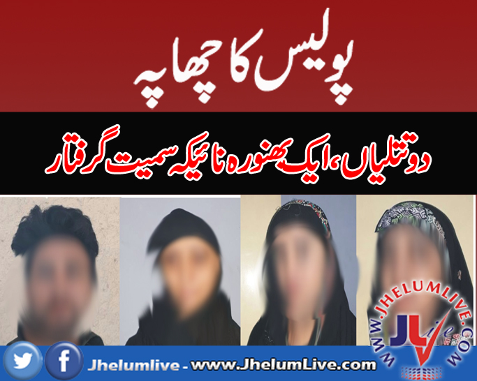 جہلم لائیو (بیورو رپورٹ ) پولیس کا لا چوکی کا بدکار ی کے اڈے پر چھاپہ، ایک مرد تین خواتین حالت غیر میں گرفتار، مقدمہ درج کر لیا گیا ، تفصیلات کے مطابق پولیس کالا چوکی جہلم کے اے ایس آئی غلام مجبتیٰ نے خفیہ اطلاع پر محلہ محمود آباد میں چھاپہ مار کر بدکاری کا اڈے چلانے والی نائیکہ زاہدہ رحمان، خواتین ریحانہ، صبا کو ہمراہ دلال ثمر عباس کو موقع سے گرفتار کرکے ان کے خلاف زیر دفعہ 371-A، 371-Bکے تحت مقدمہ درج کرلیا ہے ۔