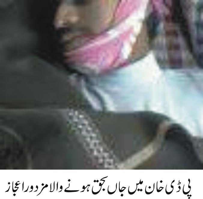 جہلم لائیو (بیورو روپورٹ) یوم مئی پرپی ڈی خان میں شیطان صفت افراد نے مزدور کو بدفعلی کے بعد جسم میں ہوا بھر دی ، راولپنڈی لے جاتے ہوئے جاں بحق، تفصیلات کے مطابق پی ڈی خان کے علاقے غریبوال میں انسانیت سوز واقعہ سے اہل علاقہ کے دل دہل کر رہ گئے اس حوالے سے معلوم ہو اہے کہ غریبوال سیمنٹ فیکٹری میں مبینہ طور پر مزدور اعجاز کو وہاں کے چند شیطان صفت افراد نے زیادتی کا نشانہ بنایا جس کے بعد اس کے جسم میں پریشر گیس بھر دی ، جس سے اس کی حالت غیر ہونے پر تحصیل ہسپتال پنڈ دادن خان لایا گیا جہاں ابتدائی طبی امداد کے بعد اس کو راولپنڈی ریفر کر دیا گیا لیکن وہ راستے میں ہی دم توڑ گیا۔علاقہ میں غریب مزدور کے ساتھ اس انسانیت سوز حرکت پر تشویش کی لہر دوڑ گئی ، تاحال اس حوالے سے کسی شخص کی گرفتاری عمل میں نہیں آسکی۔